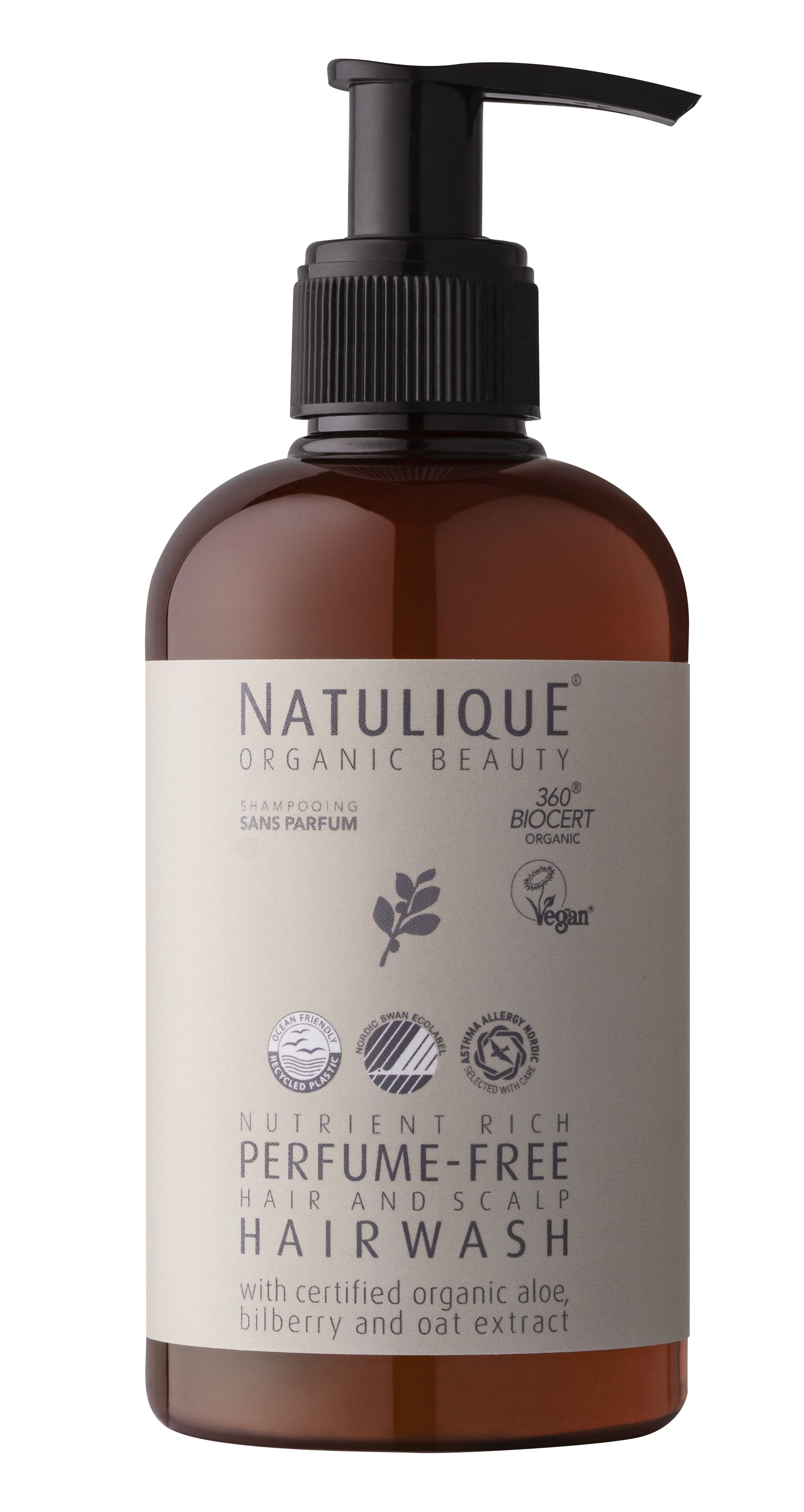 A gentle, luxury shampoo crafted for daily use, NATULIQUE Perfume-Free Hairwash is ideal for those seeking a fragrance-free, certified organic solution. Formulated to cleanse, soften, and add shine, it nourishes both hair and scalp without irritation—making it perfect for sensitive skin.